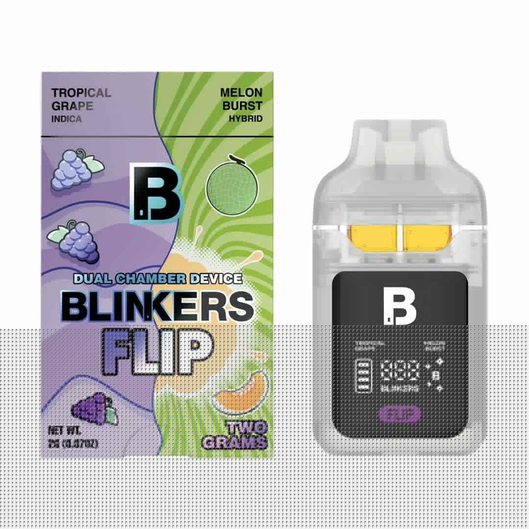 Whether you’re craving juicy fruit, sweet candy, or bold herbal terpenes, the Blinkers Flip delivers smooth, rich vapor with every draw. Each chamber holds 1 gram of high-quality, terpene-infused THCA extract — totaling 2 grams of potent goodness that lasts longer than typical single-flavor disposables.